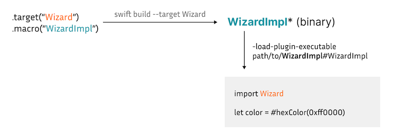 After having the tool binary, macro expansion can be done simply by specifying the Swift flags as follows: -load-plugin-executable path/to/WizardImpl#WizardImpl.
